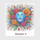 Uma coleção vibrante de adesivos se rompe com cores, mostrando uma lua azul alegre cercada por um conjunto de flores e folhas verdes e exuberantes. O design captura um espírito lúdico, perfeito para iluminar notas, letras ou mensagens digitais.