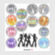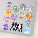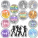 Inclui imagens de arte de bola de disco em múltiplas cores; uma bola de disco prateada, uma bola de ouro, uma bola de disco azul, uma bola de disco arco-íris, uma bola de disco cor-de-rosa, uma bola de disco dourado e prata, uma bola de disco multicor, uma bola de disco roxa. Além disso, inclui-se uma silhueta de dançarinos de discotecas.