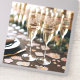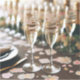 Vinhetas de vidro de champanhe com mensagens celebratórias para brindar na recepção.
