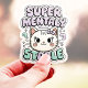 Este adesivo irônico mostra um gato adorável com a frase "Super Mentalmente Estável." Perfeito para quem aprecia um pouco de humor e sarcasmo escuros. Feito com vinil durável, este adesivo é excelente para laptop, garrafas d'água, revistas e muito mais.