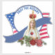 Este belo adesivo de contorno apresenta uma imagem religiosa católica tradicional da Virgem Abençoada Maria, Nossa Senhora da Fátima com rosas vermelhas e a Bandeira Americana.