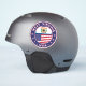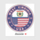 Design da Virgínia Ocidental com bandeira da Virgínia Ocidental e bandeira dos Estados Unidos, forma arredondada. vinheta West Virginia, autocolante de carro West Virginia, autocolante de bagagem West Virginia, viagem West Virginia.