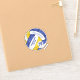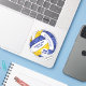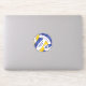 Esse adesivo de vôlei azul, dourado e branco com nome de mascote personalizado apresenta um padrão caleidoscópico floral misturado com os painéis de vôlei azul e dourado e um padrão de espiral de abstrato de arte misturado com os painéis brancos - seu nome e nome de equipe são personalizáveis, assim como seu número de camisola em um pequeno vôlei branco - de katz_d_zynes