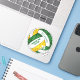 Esse adesivo de vôlei verde, dourado e branco com nome de mascote personalizado apresenta um padrão caleidoscópico floral misturado com os painéis de vôlei verde e dourado e um padrão de espiral de abstrato de arte misturado com os painéis brancos - seu nome e nome de equipe são personalizáveis, assim como seu número de camisola em um pequeno vôlei branco - de katz_d_zynes