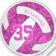 Esse adesivo de vôlei rosa-quente e branco apresenta um padrão caleidoscópico floral misturado com os painéis cor-de-rosa e um padrão de giro abstrato artístico misturado com os painéis brancos - seu nome e número de camisa são personalizáveis - por katz_d_zynes
