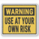 Warning Use At Your Own Risk Sign