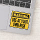 Adesivo Warning Use At Your Own Risk