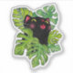 Adesivo Watercolor Whimsical Black Cat And Monstera Leaves