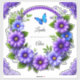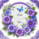 Uma coroa esboçada com flores coloridas, folhagem verde e uma borboleta azul, colocada sobre um fundo neutro. O arranjo apresenta elegância e vibração adequadas para vários fins decorativos.