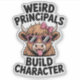 Leadership takes confidence, creativity, and sometimes a willingness to be a little weird. This fun school humor design features an adorable Highland cow wearing heart-shaped sunglasses and a pink bow, paired with the phrase “Weird Principals Build Character.”