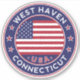 Crachá de West Haven Connecticut, adesivo de West Haven com bandeira dos Estados Unidos, forma arredondada. West Haven crachá, West Haven emblem.
