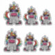 Um unicórnio arco-íris, fofo e fofo! Esta folha inclui um design de adesivo em vários tamanhos. Disponível em muitos outros produtos, como skates, notebooks, t-shirts e convites de aniversário.