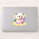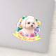 Adesivo Winsome Bichon Frisé, flor amarela, rosa e púrpura