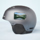 A battery shaped sticker with a beautiful reflected mountain view on a water reservoir in Winter Park, Colorado with the reminder to recharge your own battery.