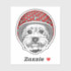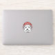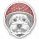 Este design apresenta um retrato de um Yorkshire Terrier vestindo um capacete pontilhado de polca vermelho e lacrado.