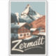 Zermatt retro vetor viagem design. Zermatt, no cantão de Valais, na Suiça meridional, é um porto de montanha conhecido por esquiar, escalar e caminhar.