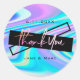 Adesivos personalizados de agradecimento Bold Vibrante Colorido Holográfico com fita adesiva preta e design geométrico decorativo. Adesivos de agradecimento para casamento, texto de caligrafia moderna elegante em cartão postal com folha metálica holográfica falsa. Perfeito para embrulhar presentes e brindes para seus convidados e clientes, chá de bebê, mensagem de agradecimento de 16º aniversário, chá de noiva, celebrações de branding corporativo empresarial e qualquer ocasião alegre e colorida.