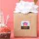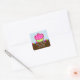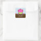 © 2011 Designs socialitas. Um adesivo de design de cupcake divertido e colorido com espirais de fundo e pontos de polca.