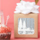 Este design, encantador, emprega listras em azul pastel e sombras de cinzas com uma base de árvores brancas de neve e cobertas de neve, fornece a mistura e o pano de fundo perfeitos para a mensagem "Feliz Natal". É bem-vindo remover a imagem de texto e substituí-la por uma mensagem de feriado própria. Estes maravilhosos autocolantes são um excelente acompanhamento do plástico do presente, caixas de favor e bolsas, além de excelentes para raspar ou selar envelopes de cartões de férias.