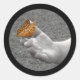 Uma criança segura a mão e dá as boas-vindas a uma borboleta para percorrer lá. Fotografia colorida em preto e branco.