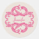 Os adesivos Chic Damask Elegantes e sofisticados com fundo bege macio e um ornamento na moda amarrável florescem em magenta. Esta design moderna é fácil de personalizar com o seu próprio texto. Clique em "Personalizar" para encontrar mais opções de personalização.