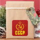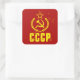 Simples bandeira comunista com o símbolo do martelo e foice cercada por uma coroa de louros e no topo uma estrela e no fundo o CCCP escrevendo feito em um retrô, vintage e estilo usado.