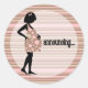 Este adesivo coordena com anúncios, convites para chuveiros de bebês e selos postais encontrados na minha loja. A design é uma silhueta grávida com a mão de mãe na barriga do bebê. Ela está vestindo um vestido rosado pontilhado e está sobre um fundo listrado rosa e marrom. Perfeito para adicionar o toque final selando o envelope.