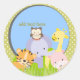 Tema selva da PixDezines para uma festa de aniversário divertida. Com animais bebés, hipopótamo rosa, elefante roxo, girafa com bolinhas amarelas, filhote de tigre, bem como um pequeno macaco marrom travesso montado na cabeça de um elefante. Impressão de zebra é um toque final no fundo.