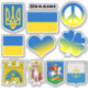 Adesivos de Contorno: Bandeira da Ucrânia, símbolo da paz, Tryzub - brasão de armas, coração, folha de trevo e cidade de Kiev / oblast, cidade de Lviv, Mariupol