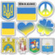 Adesivos de Contorno: Bandeira da Ucrânia, símbolo da paz, Tryzub - brasão de armas, coração, folha de trevo e cidade de Kiyv / oblast, cidade de Lviv, Mariupol