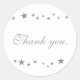 Uma borda animada de estrelas prateadas de vários tamanhos é impressa em adesivos personalizados. O texto diz: Obrigado, e é fácil de personalizar. Excelente escolha para casamentos, aniversários e muito mais. Obrigado por comprar na CherylsArt no Zazzle.