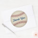Um beisebol em estilo vintage decora este adesivo de agradecimento divertido. Use esses adesivos para negócios, aniversários, sacolas de presentes, etc.... O design é de arte original.