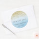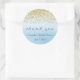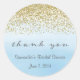 Adesivos de agradecimento com desenho de brilho dourado falso e fundo de aquarela azul ombre.