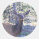 Uma folha de adesivos com uma foto de um alce sorrindo.