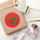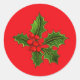 O adesivo é mostrado em vermelho com uma impressão festiva de azevinho de Natal.