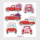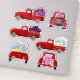 Adesivos de Caminhões Vermelhos do Dia dos Namorados. Com a arte original "Little Red Trucks" de Rick Ellinger. Perfeito para decorar seus itens para o Dia dos Namorados! Também é bom para decorar seu álbum de recortes ou cartões e envelopes do Dia dos Namorados, ou seu carro, ou garrafas de água, e mais! 6 adesivos de caminhão individuais. Cada adesivo de caminhão visto de lado tem 7,62 cm de largura. Cada adesivo de caminhão visto de trás tem 6,35 cm de largura.