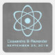 Vinhetas de Casamento Atômico, bonitas e nerds, apresentando um símbolo atômico simples em azul claro sobre um fundo de aparência de quadro. Estes viciados em casamento são perfeitos para o casal de entusiastas da ciência! Fácil de personalizar, basta adicionar os detalhes do seu casamento nos espaços fornecidos. Clique em "Personalizar" para encontrar mais opções de personalização.