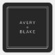 Este adesivo de casamento do Avery Suite apresenta um fundo preto escuro, um fino quadro duplo branco e um tipo de sans serif limpo. Ele cria um olhar moderno e polido adequado a locais de cidades, galerias e casamentos noturnos. Personalize o rótulo com os nomes do casal.