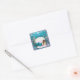 Adesivos de chuvadebebê sereia com sereia morena adorável usando uma tiara e pérolas em um lindo fundo azul-teal e roxo sob o mar. Você pode adicionar texto para personalizar estes adoráveis adesivos de chuvadebebê sereia.