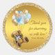 Adesivos de chuvinha de bebê urso teddy com adorável ursinho e belos balões azuis e dourados em um belo fundo dourado. Esses adesivos de chuvinha de bebê urso teddy são facilmente personalizados com o texto de sua escolha.