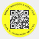 Personalize nossos adesivos de código QR redondos com o nome da sua empresa, link do código QR e texto personalizado. São adesivos profissionais resistentes a riscos impressos em papel livre de ácido. Disponíveis em acabamento brilhante ou fosco nos tamanhos 3,8 cm e 7,6 cm. Projetados em amarelo e outras cores (todas as cores são personalizáveis). Baixa quantidade mínima de pedido e sem taxa de configuração.