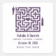 Adesivos de Data de Salvamento Labirinto de Amor excêntricos e divertidos em roxo, apresentando um labirinto com um coração no meio e uma noiva e noivo de cada lado, esperando para se encontrar e amar. Este design doce é uma escolha encantadora para anunciar seu próximo casamento! Fácil de personalizar, basta preencher os detalhes do seu casamento nos campos de texto fornecidos. Clique no botão "Personalize" para encontrar opções adicionais de personalização.
