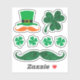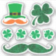 Rua divertida. O adesivo do dia de Patrick com um chapéu verde de duende com bigode de gengibre, shamrock e bigode verde (imagens impressas) e quatro treves verdes.