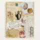 Planejador vintage com os antigos adesivos, postais e impressão de flores.