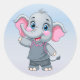Os palitos com um elefante de desenho animado com grandes olhos azuis e bochechas rosadas estão balançando alegremente.