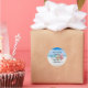 Selos de envelope de endereço de devolução redondos com imagem de bebidas na praia. Qualquer pessoa que viva um estilo de vida casual e à beira-mar vai adorar este adesivo. Coquetéis gelados estão sentados em uma praia ensolarada com água azul tropical ao fundo. Esta é a imagem de fundo para o seu nome e endereço que é impresso em estilo manuscrito grosso. Outras formas de adesivos podem funcionar dependendo do seu texto. Não deixe que nenhuma palavra se aproxime da borda.