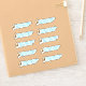 Adesivos de endereço de retorno de concha de buccino. Texto azul aqua em adesivos que se moldam ao texto e imagem. Uma concha de buccino ilustrada decora o lado esquerdo. Escolha o tamanho da folha onde os rótulos terão o tamanho que você preferir. Nesta folha de 6x6 polegadas, os rótulos terão aproximadamente 1” por 2,5” de tamanho.