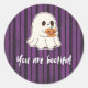Adicione um toque assustadoramente fofo aos seus presentes, cartões ou lembrancinhas de festa com esses adoráveis adesivos de Halloween! Com um fantasma sorridente abraçando uma abóbora em um fundo listrado de roxo e preto, com a frase divertida “Você é bootiful.”