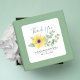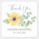 Adesivos de favor de aquarela floral! Este design botânico apresenta um girassol amarelo rodeado por um verde de folhas de eucalipto na minha arte original de aquarela pintada à mão com "OBRIGADO" em uma tipografia de letras à mão trendy. Use os campos de modelo simples para adicionar suas informações personalizadas. Uma escolha fofa e doce para aderir aos seus favores de casamento, lembrancinhas de chá de panela ou chá de bebê. Para ver adesivos de agradecimento visite www.zazzle.com/dotellabelle