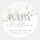 Incorpore o tema do chá de bebê nos adesivos de favor ou selos de envelope com nosso adesivo redondo clássico rústico 'BEBÊ EM FLORESCÊNCIA'.